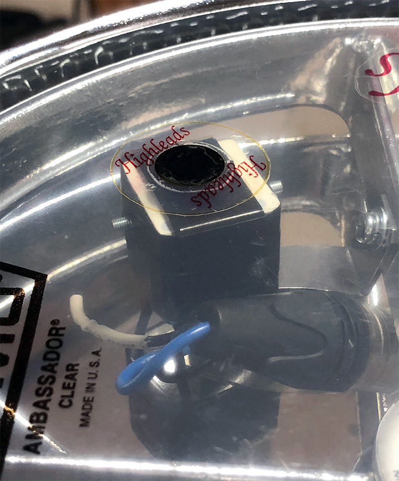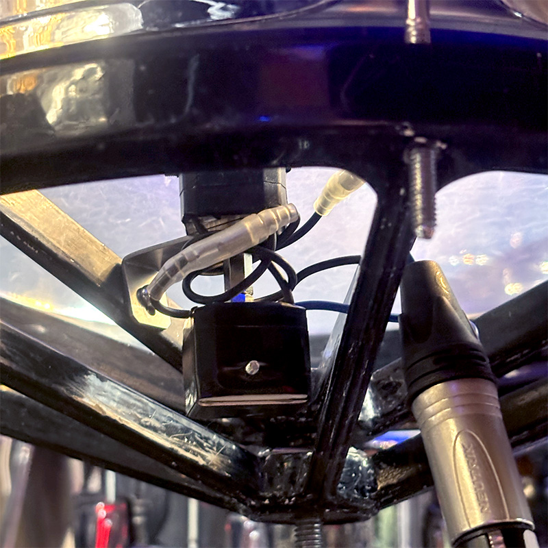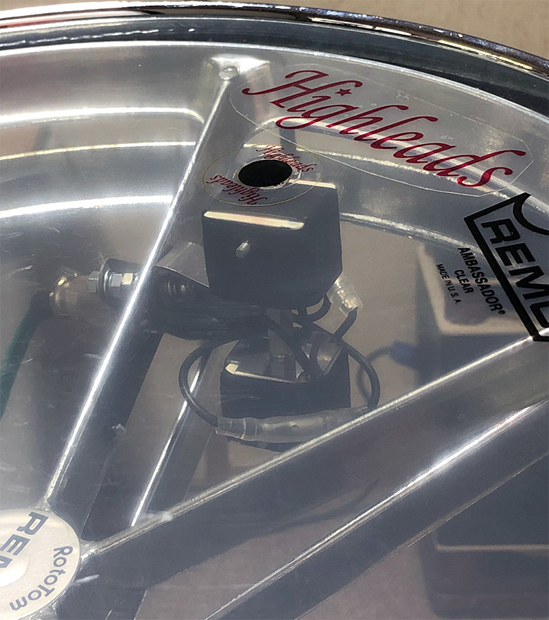 12インチは口径が大きく、L字型ジョイントの上に打撃面CubeMicを固定。