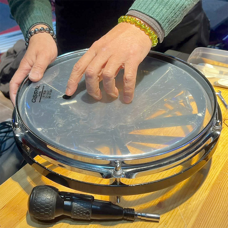 ヘッドの張ってから、最後の微調整をして締込固定