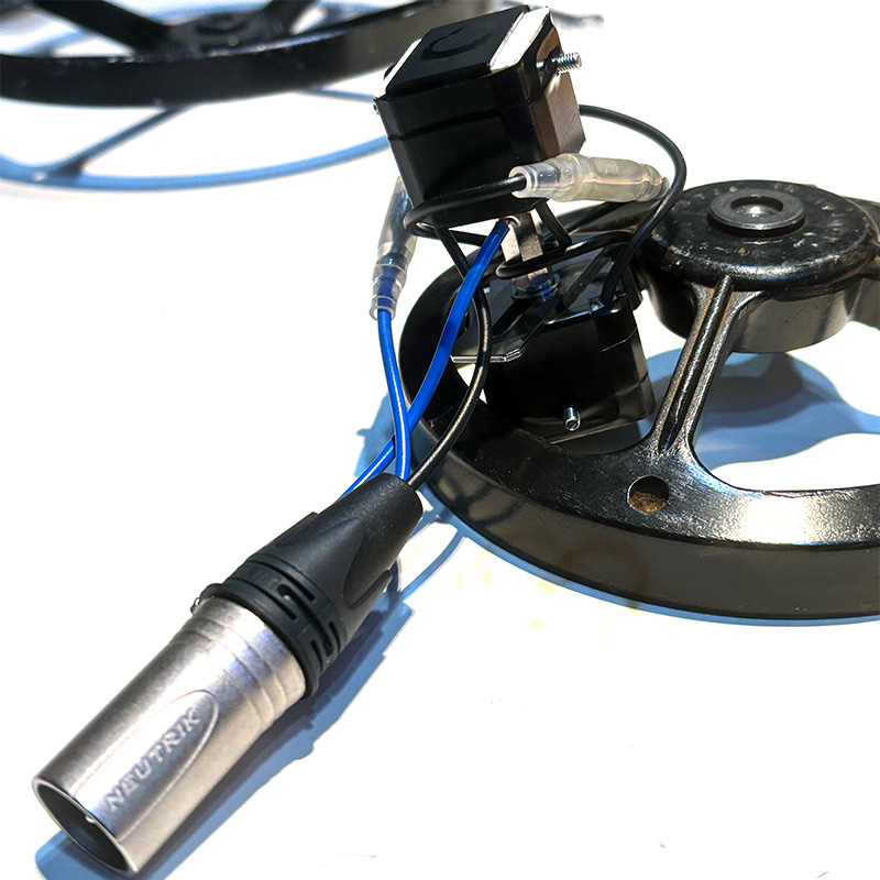 XLR端子の取り付けと同時に、微妙に角度のある軸に合わせて