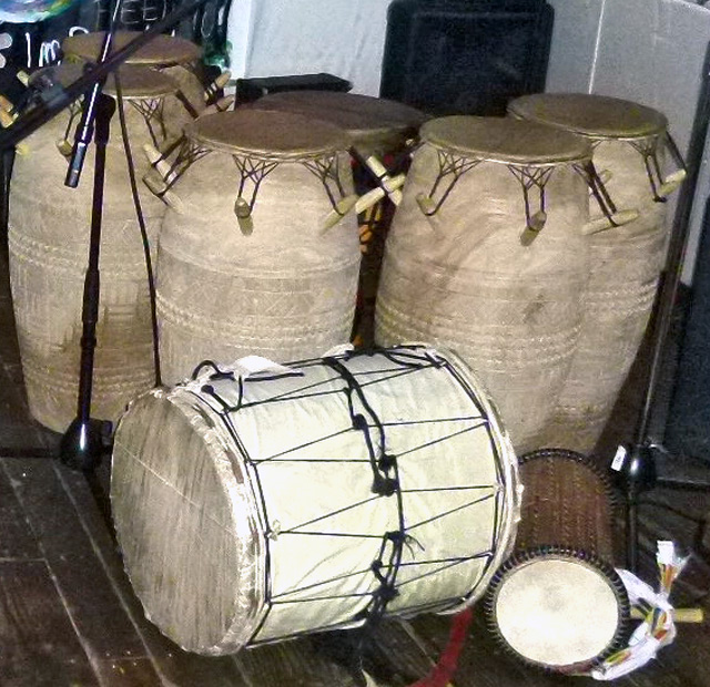 【ウィンチェスター・ニ・テテ】 ガーナの国立舞踊団でプレイしていた彼は,アフリカ音楽の中で最も難関とされるガーナの伝統的リズムを完璧に叩きこなすことができる数少ない人物の一人である. 日本人にはまだ馴染みのない打楽器 ”パンロゴ ”やトーキングドラム,ジャンベを用いた彼のプレイは,深く,熱く,聴く者を音の世界へグッと引き込む不思議な魅力を持っている. さらに,トラディショナル・ミュージックに留まらず,ジャズ,ヒップポップ,レゲエなどあらゆるジャンルの現場をプレイしてきたニ・テテは,どんなサウンドにも即座に反応するフリースタイルの名手でもある。 |