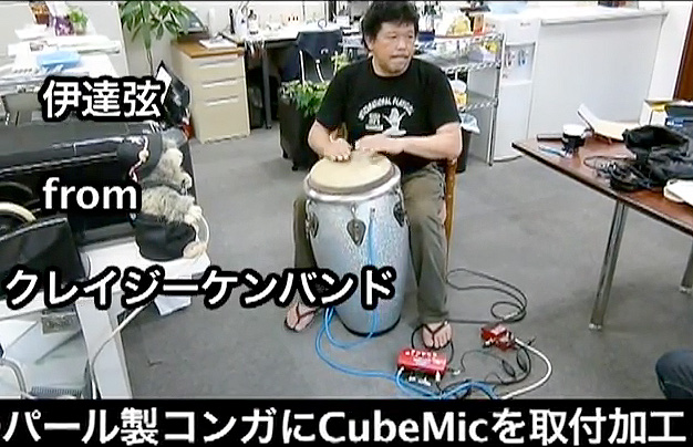 活躍されていた伊達弦氏のパール製コンガに、パール様の仲介で、この度CubeMicの取り付け加工を行いました。